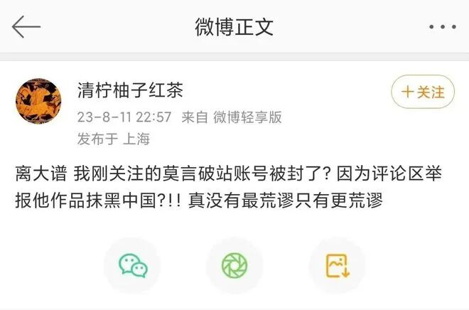 莫言B站账号被封,被举报通过写作"抹黑中国"